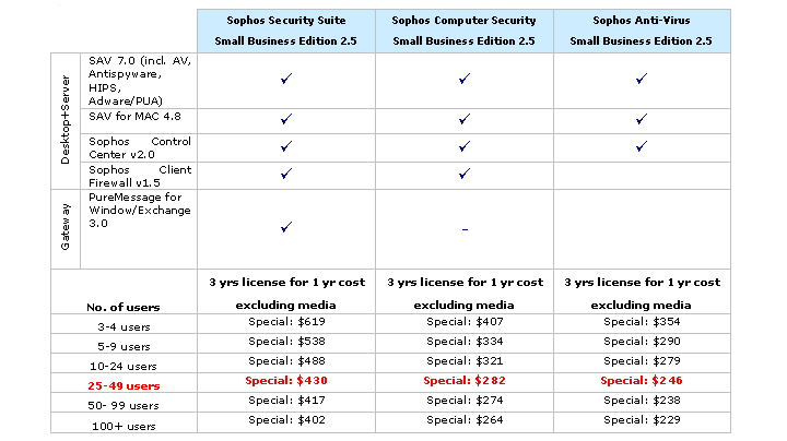 | 8. Existing customers using Sophos Small Business suite v1.x can get the upgraded v2.5 of Sophos Anti-Virus Small Business Edition and Sophos Control Center at any time, free of charge , during the period of their existing license. |